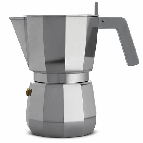 The Moka espresso maker is a update of the original Moka Express designed by Bialetti. in the 1930s. It still features a signature, multifaceted shape with eleven sides but has a flat lid to allow cups to heat up before pouring. This helps to enhance the aroma and flavour. As an added bonus, the lid may be raised with one hand.